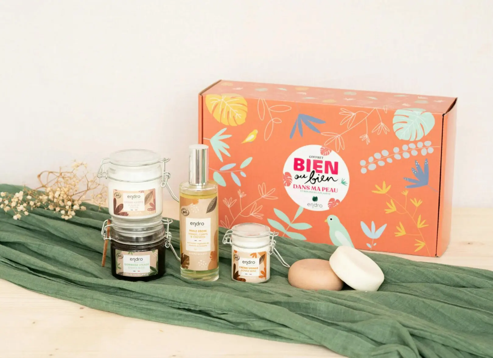 Prix réduit : 50,00€ au lieu de 85,70€ (contient 6 produits : Le Gommage visage Douce Aloe 100ml / La crème visage Bonne Mine 50ml / La crème corps Fleur de Coton 100ml / L’huile Sèche 100ml / Le Shampoing solide Granit Rose 85ml / L’après-shampoing solide Grève Blanche 80ml)