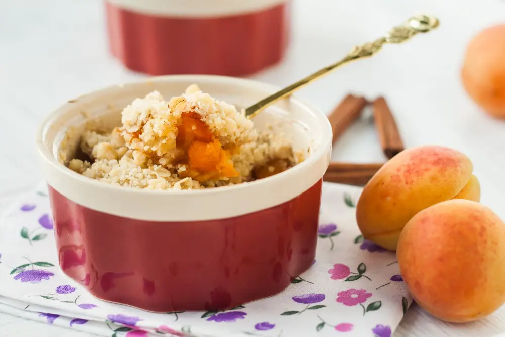 - Sortez votre plat du four. Saupoudrez les fruits avec la pâte à crumble.