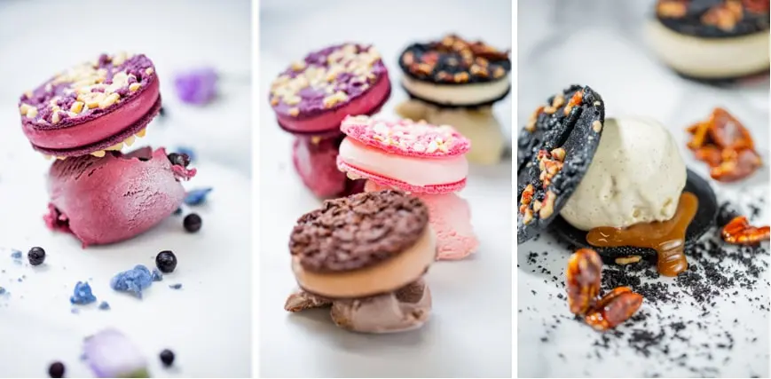 Julien Alvarez, Chef Pâtissier de la Maison, a créé une toute nouvelle expérience de dégustation de crème glacée : deux sablés croquants aux amandes (sans gluten) qui entourent une glace onctueuse au cœur fondant surprenant.