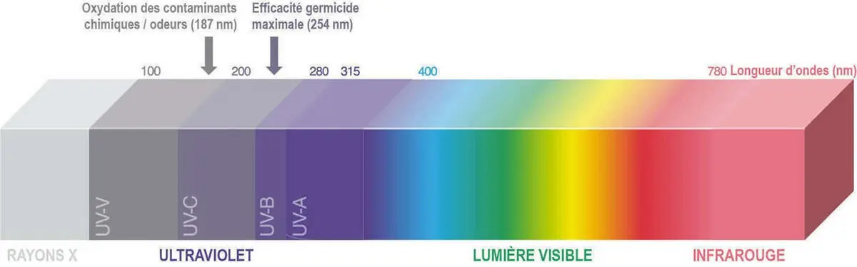 Le soleil produit un rayonnement UV spécifique qui détruit et désactive les contaminants se trouvant dans l’atmosphère. Tout comme les rayons solaires UV-C et UV-V, les systèmes de purification de la gamme Sanuvox reproduisent les mêmes longueurs d’ondes, apportant ainsi le même processus naturel de purification des lieux de vie.