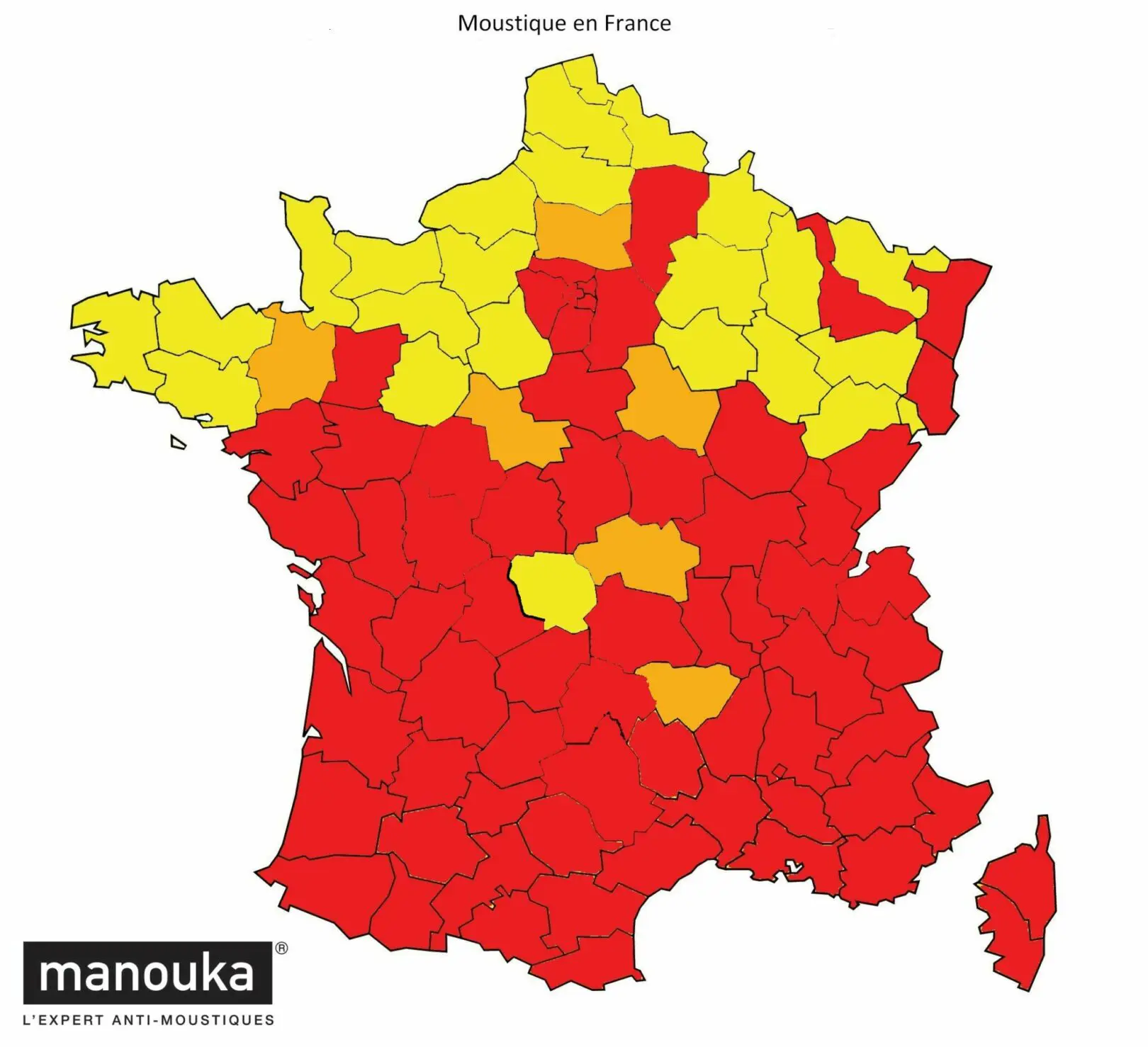 Cette année encore, ce sont 3 nouveaux départements qui passent en vigilance rouge, c’est à dire que le moustique tigre a été déclaré officiellement implanté et actif sur ces territoires, ce qui fait monter le chiffre à 67 départements, soit près de 70% des départements de métropole concernés par la colonisation du moustique Aedes Albopictus.