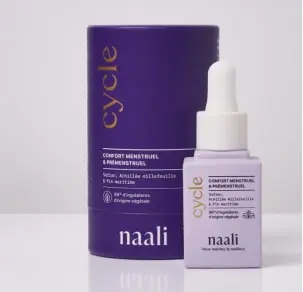 Naali Cycle se présente sous forme de Flacon pipette 18 ml – 2 pipettes par jour à diluer dans une boisson – 7 jours avant et 7 jours après le premier jour des règles.