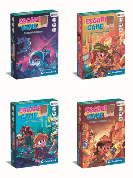 Une collection de 4 mini jeux, avec 4 thématiques différentes : La Pyramide, Le Château, Le Musée et L’Espace. Chaque jeu contient des cartes, un plateau et différents objets et indices.